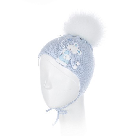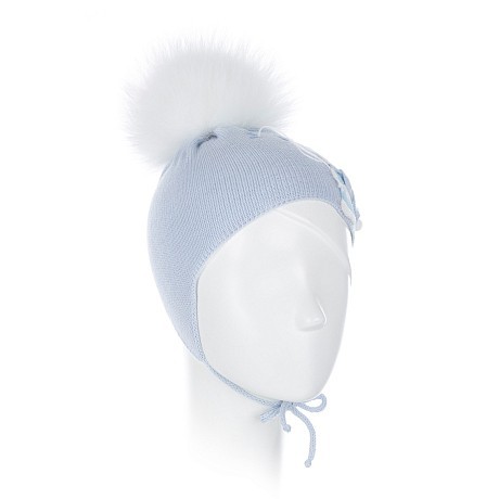 Голубая шапка для девочек Joli Bebe с меховым помпоном