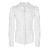 - 🎨 Дизайн: эластичные рукава с рюшами, белый цвет, воротник