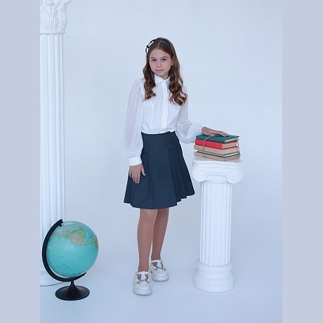 Блузка школьная текстильная для девочек АНДЕРСЕН молочная