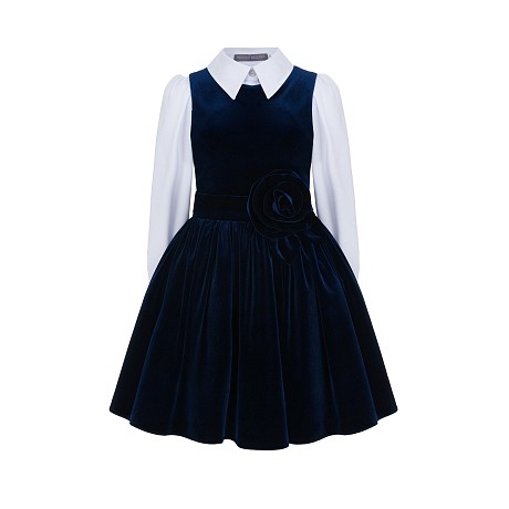 - 🎨 Дизайн: белый цвет, рукава-фонарики, белый воротничок