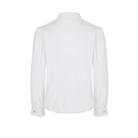 Белая трикотажная блузка для девочек Ella B. с кружевом и бантом