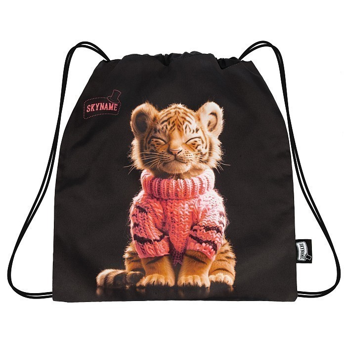 Сумка для обуви SkyName – это идеальный аксессуар для девочек! Изготовленная из 100% полиэстера, она украшена очаровательным принтом тигра в свитере. Черный фон с ярким рисунком создает стильное и удобное решение для хранения обуви. Бренд SkyName известен своими качественными и оригинальными изделиями от США.
