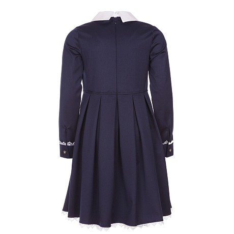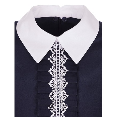 - 🎨 Дизайн: темно-синий цвет, белое кружево, воротничок с кружевной отделкой
