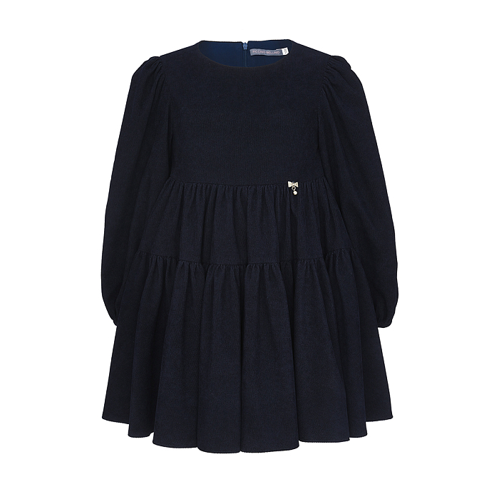 - 🎨 Дизайн: темно-синий вельвет, длинные рукава, рюшы, бантчики на воротнике