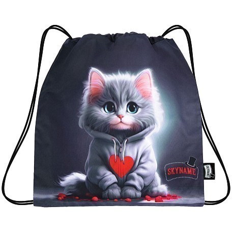 Мешок для обуви SkyName – это идеальный выбор для девочек! Изготовленный из 100% полиэстера, он украшен очаровательным принтом серого котенка в сером худи с красным сердцем. Нежная ткань и яркий принт создают уютное и в то же время стильное настроение. На фотографии видна аккуратная черная окантовка по краю и удобная ручка для переноски. Качество от бренда SkyName и внимание к деталям делают этот мешок отличным выбором для вашего ребенка!