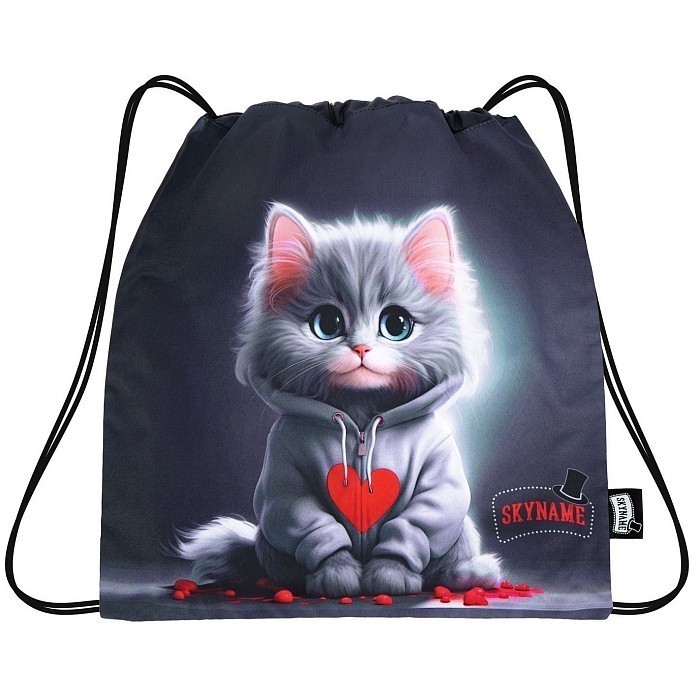 Мешок для обуви для девочки SkyName с принтом серого котенка