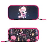 Жесткий пенал SkyName – это идеальный выбор для девочек! Изготовлен из 100% этиленвинилацетат/полиэстер, он украшен очаровательным принтом единорога и цветов. Нежная черная основа с яркими розовыми акцентами создает игривое и в то же время уютное настроение. На фотографиях видна аккуратная розовая окантовка по краю и мягкая текстура ткани. Качество от бренда и внимание к деталям делают этот пенал отличным выбором для вашего ребенка!