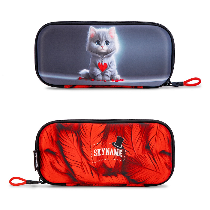 Жесткий пенал SKYNAME – это идеальный выбор для девочек! Изготовлен из прочного материала 100% этиленвинилацетат/полиэстер, он украшен милым принтом кошки в сердечном капюшоне. Мягкий серый фон с красным сердцем и белым кошкой создает уютное и в то же время стильное настроение. На фотографиях видна аккуратная черная окантовка по краю и прочная текстура ткани. Качество от бренда SKYNAME делает этот пенал отличным выбором для девочек!