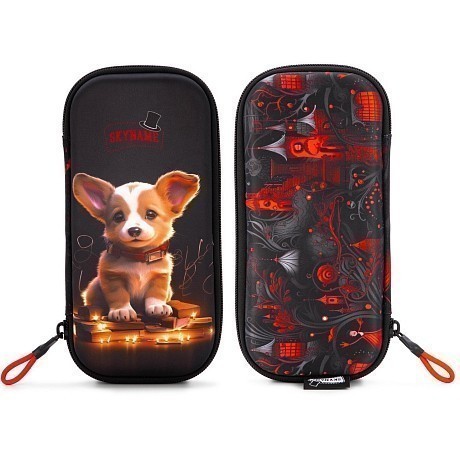 Жесткий пенал для девочки SKYNAME с принтом собаки и красными акцентами