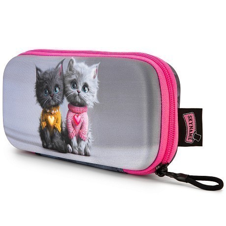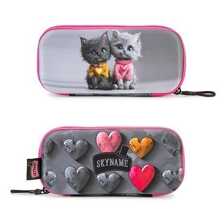 Жесткий пенал SkyName – это идеальный выбор для девочек! Изготовлен из 100% этиленвинилацетат/полиэстер, он украшен очаровательными кошками в свитерах и сердечками. Нежная серая основа с яркими сердечками и кошками создает игривое и в то же время уютное настроение. На фотографиях видна аккуратная розовая окантовка по краю и удобная застежка на молнии. Качество от бренда и внимание к деталям делают этот пенал отличным выбором для вашего девочки!