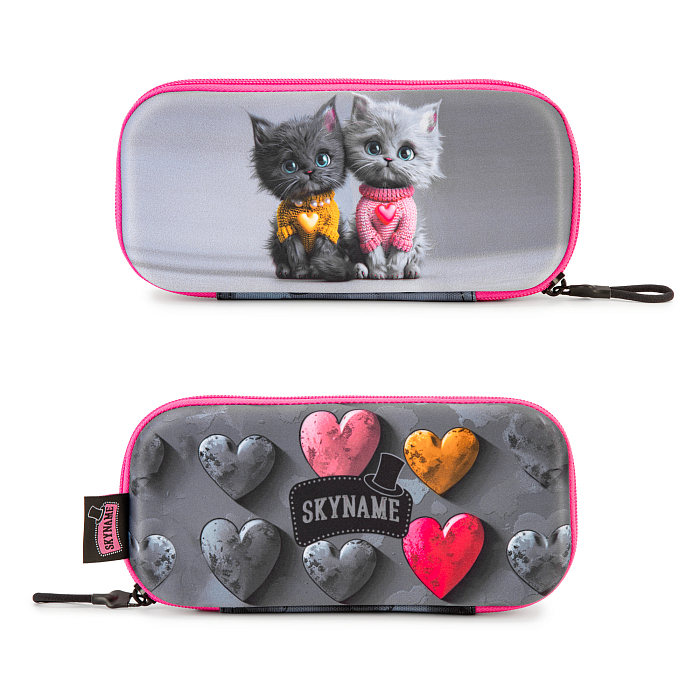 Жесткий пенал для девочек с принтом кошек и сердечек