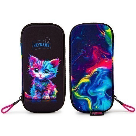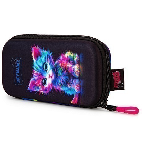 Жесткий пенал SkyName – это идеальный аксессуар для девочек! Изготовлен из прочного материала 100% этиленвинилацетат/полиэстер, он оформлен ярким принтом с котенком и абстрактным рисунком. Черный фон с яркими цветами делает пенал стильным и привлекательным. На фотографиях видна удобная застежка на молнии и яркая ручка для удобной переноски. Пенал подходит для всех возрастов и идеально подойдет для хранения канцелярских принадлежностей.