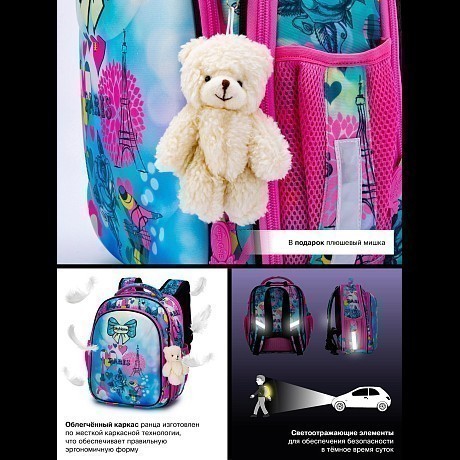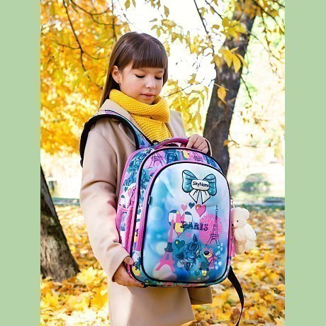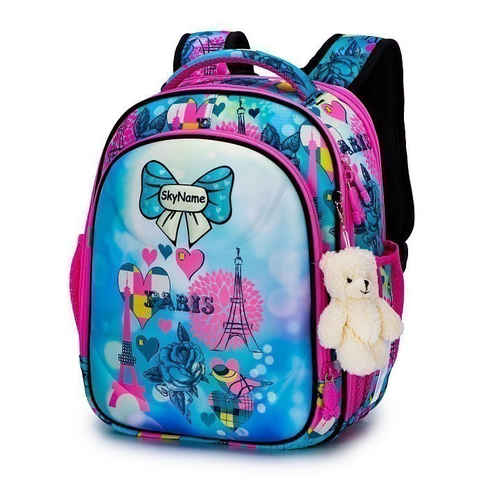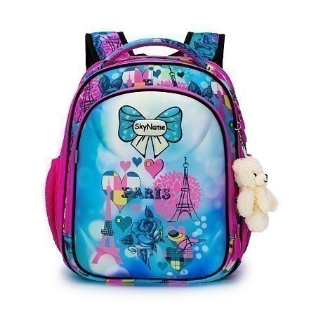 Ранец+брелок мишка SkyName – это идеальный выбор для маленьких модниц! Изготовленный из 100% полиэстера, он украшен очаровательным принтом с изображением Парижа, сердечек и башни Эйфеля. Ранец оформлен в ярких цветах, которые создают радостное настроение. На передней панели видна крупная надпись "SkyName" в голубой ленте с белым бантом. Боковые карманы и ручка для переноски удобны в использовании. Белый брелок-мишка придает ранцу дополнительную привлекательность и радость. Ранец+брелок мишка SkyName – отличный аксессуар для девочек любого возраста!