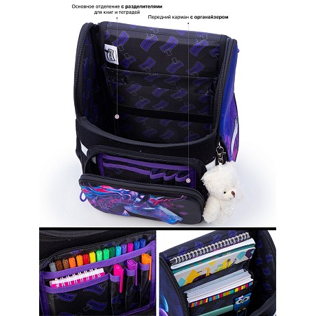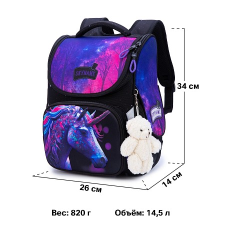 Ранец+брелок SkyName – это идеальный выбор для маленьких модниц! Изготовленный из 100% полиэстера, он украшен очаровательным принтом с изображением единорога на черном фоне. Белый брелок в виде мишки добавляет детали и радость. Ранец удобно сшит, имеет все необходимые карманы для хранения школьных принадлежностей. Быстрая доставка СДЭК по всей России.