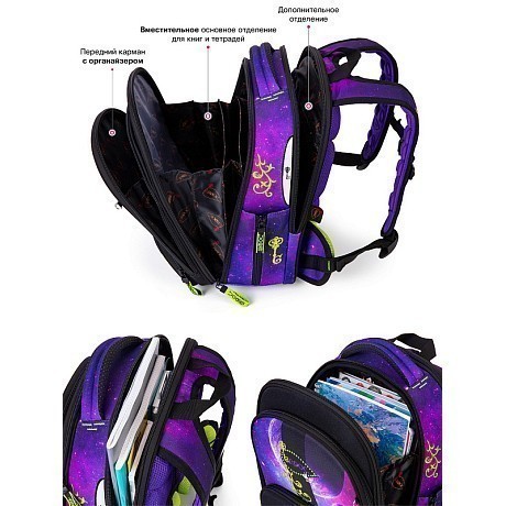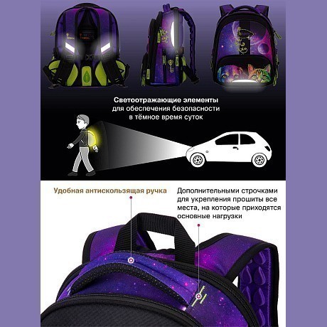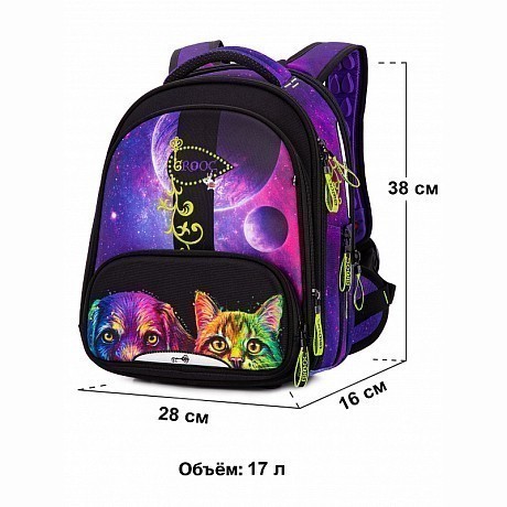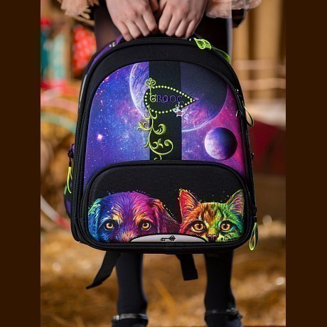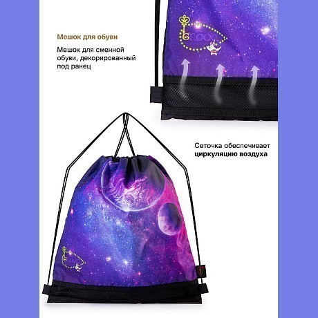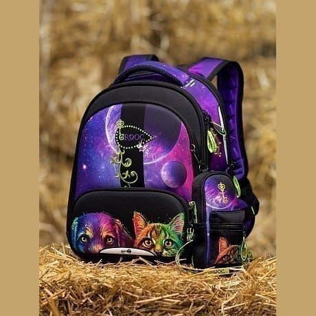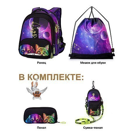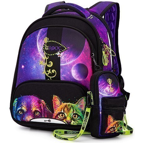 Ранец+пенал+мешок для обуви+сумка-пенал для девочки GROOC – это идеальный выбор для маленьких модниц! Изготовленный из 100% полиэстера, он украшен очаровательным дизайном с котиками и планетами на фиолетовом фоне. Стильный и удобный ранец, который идеально подойдет для девочек любого возраста. На фотографиях видна аккуратная зеленая окантовка по краю и мягкая текстура ткани. Качество от бренда GROOC и внимание к деталям делают эту сумку отличным выбором для вашего ребенка!