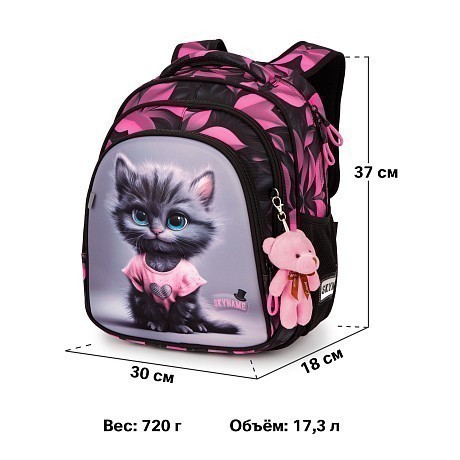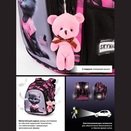 Рюкзак+брелок SkyName – это идеальный выбор для маленьких модниц! Изготовленный из 100% этиленвинилацетат/полиэстера, он украшен очаровательным принтом мишки в черном костюме с розовыми акцентами. Мягкая черная основа с яркими розовыми деталями создает игривое и в то же время стильное настроение. На фотографиях видна аккуратная розовая брелок в виде мишки и черная текстура ткани. Качество от бренда и внимание к деталям делают этот рюкзак отличным выбором для вашего ребенка!