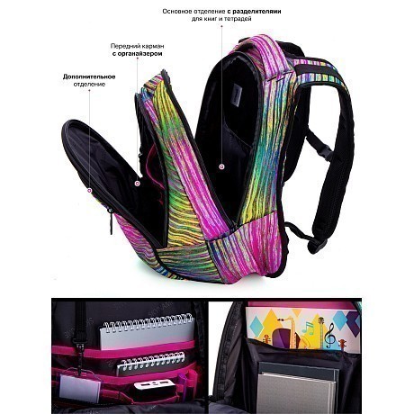 Рюкзак для девочки SkyName – это идеальный выбор для стильных и модных девочек! Изготовленный из 100% полиэстера, он украшен ярким принтом в фуксии, синем, зеленом и желтом. Рюкзак имеет удобную посадку и эластичные резинки на ремнях для идеальной фиксации. На фотографиях видны яркие полосы, черные молнии и логотип бренда SkyName на передней части. Качество от бренда SkyName и внимание к деталям делают этот рюкзак отличным выбором для вашего ребенка!