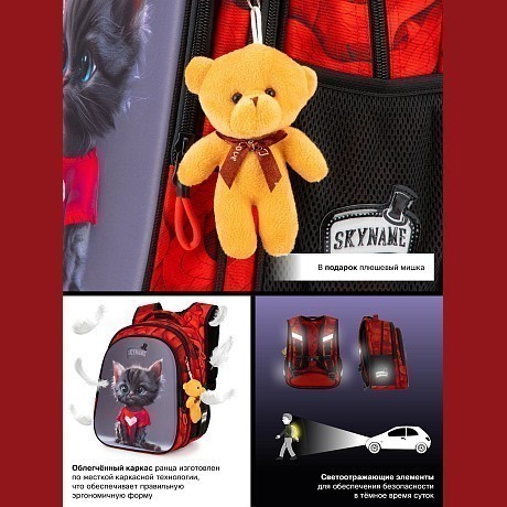 Рюкзак+брелок мишка для девочки SKYNAME – это идеальный выбор для маленьких модниц! Изготовлен из 100% этиленвинилацетата, он украшен очаровательным изображением котенка в красной футболке с сердечком и маленьким брелоком в виде мишки. Качество от бренда SKYNAME делает этот рюкзак не только стильным, но и удобным для девочек всех возрастов. На фотографиях видна аккуратная красная окантовка по краю и мягкая текстура ткани. Качество от бренда SKYNAME и внимание к деталям делают эту модель отличным выбором для вашего ребенка!