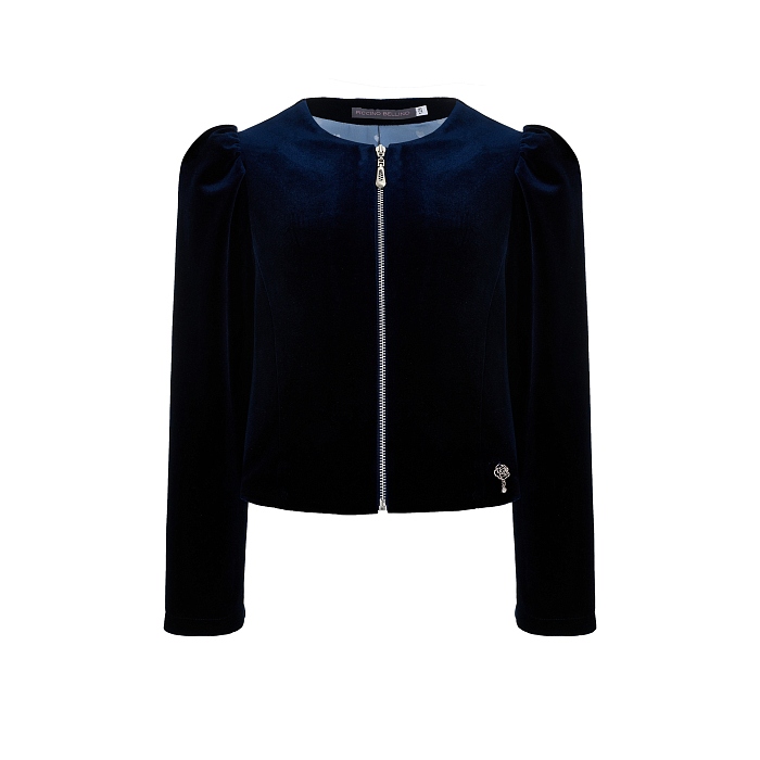 Текстильный бархатный жакет для девочек темно-синего цвета