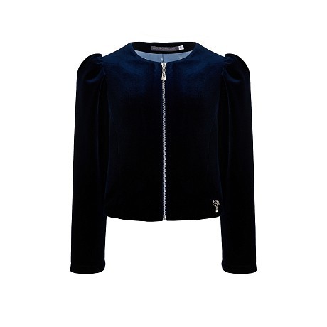 Текстильный бархатный жакет для девочек темно-синего цвета