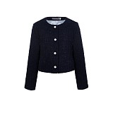 - 🎨 Дизайн: темно-синий букле, 4 белые пуговицы, круглый вырез