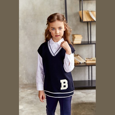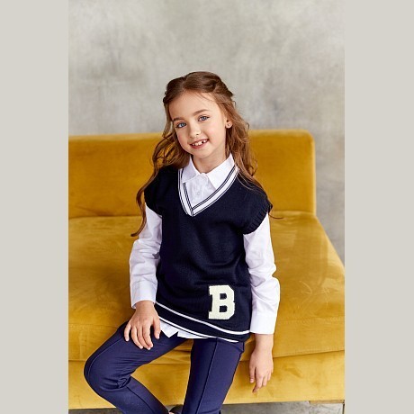 Жилет тренч для девочки от Ella B – это идеальный выбор для осенних и весенних дней! Изготовленный из 100% шерсти мериноса, он обеспечивает нежность и тепло для нежной кожи. На спине выделена крупная буква B, которая добавляет уникальности и стиля. Жилет с V-образным вырезом горловины и контрастной окантовкой по краю создает элегантный и модный образ. На фотографиях видна аккуратная белая окантовка по краю и мягкая текстура ткани. Качество от бренда и внимание к деталям делают этот жилет отличным выбором для вашего ребенка!