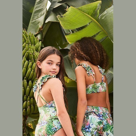 Зеленые шорты купальные для девочек Molo с тропическим принтом