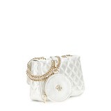 Эта очаровательная сумка-кроссбоди от американского бренда Guess станет идеальным дополнением к образу вашей принцессы. Изящная кремовая расцветка и классическая стеганая фактура придают изделию премиальный вид, а золотистая цепочка добавляет нотку роскоши. В комплекте идет удобный кошелек для мелочи, что делает этот набор невероятно практичным и функциональным. Идеальный подарок на день рождения!