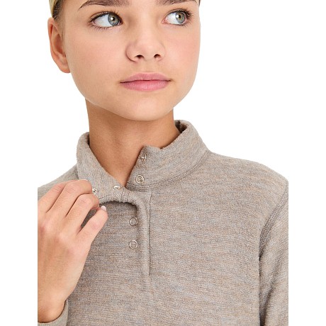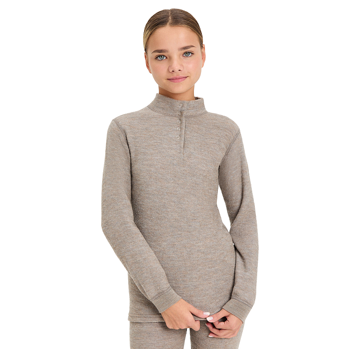 Свитшот (фуфайка) Norveg с высоким воротом – идеальный выбор для вашего ребенка! Изготовлен из 85% шерсти мериноса и 15% полиэстера, что делает его мягким и теплым. Бежевый цвет подчеркивает элегантность и стильно выглядит на всех возрастах. На фото видна высокая горловина, удобная застежка на кнопки и качественная шерсть мериноса, которая обеспечивает комфорт и тепло. Свитшот Norveg – отличный вариант для холодной погоды и повседневного использования.