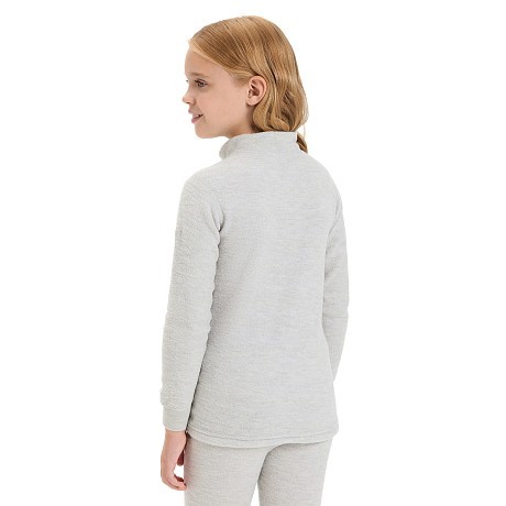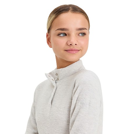 Свитшот (фуфайка) Norveg с высоким воротом и кнопками – идеальный выбор для девочек! Изготовлен из 85% шерсти мериноса и 15% полиэстера, что делает его мягким и теплым. Молочный цвет создает нежное и элегантное настроение. На фотографиях видны кнопки на вороте и мягкая текстура ткани. Свитшот Norveg – отличный вариант для холодной погоды, который подойдет для девочек от 2 до 12 лет!