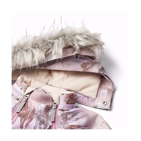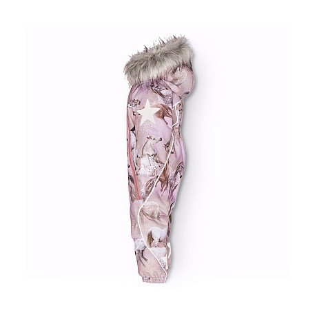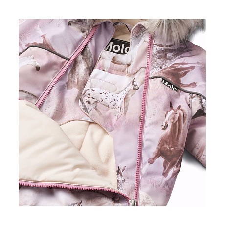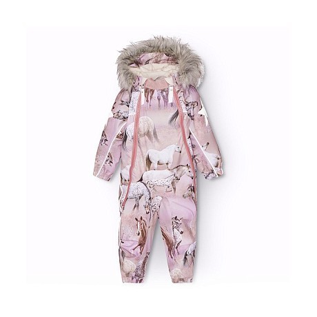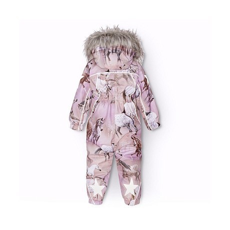 Комбинезон Molo – это идеальный выбор для девочек 12мес|80см и 18мес|86см! Изготовленный из 55% полиэстера, 45% полиэстера переработанного + наполнения 83% полиэстера переработанного, 17% полиэстера + подкладки 100% полиэстера переработанного, 100% нейлона переработанного + отделки 100% полиэстера, этот комбинезон обеспечивает максимальный комфорт и тепло. На сиреневом фоне вы найдете милые принты лошадей и звезд, которые создадут нежное и волшебное настроение. На фотографиях видна аккуратная отделка из искусственного меха по краю капюшона и мягкая текстура ткани. Качество от датского бренда Molo и внимание к деталям делают этот комбинезон отличным выбором для вашего малыша!