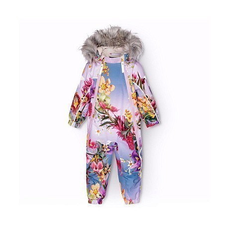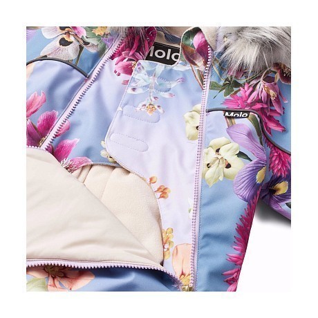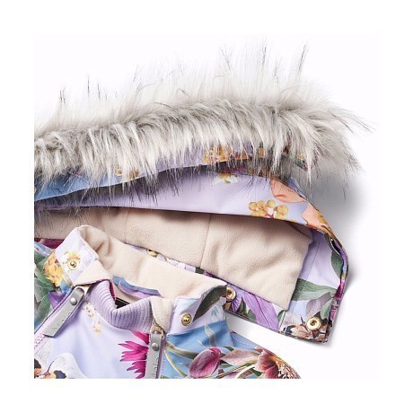 Комбинезон Molo – это идеальный выбор для маленьких модниц! Изготовленный из 55% полиэстера 45% полиэстера переработанного + наполн. 83% полиэстера переработанного, 17% полиэстера + подкл. 100% полиэстера переработанного, 100% нейлона переработанного + отделка 100% полиэстера, этот комбинезон обеспечивает отличную защиту от холода и ветра. Цветочный принт с яркими цветами и звездами на фоне нежно-фиолетового цвета делает его стильным и привлекательным. На фотографиях видна теплая подкладка из полиэстера и нейлона, а также мягкая меховая подкладка внутри капюшона. Качество от датского бренда Molo и внимание к деталям делают этот комбинезон отличным выбором для вашего ребенка!