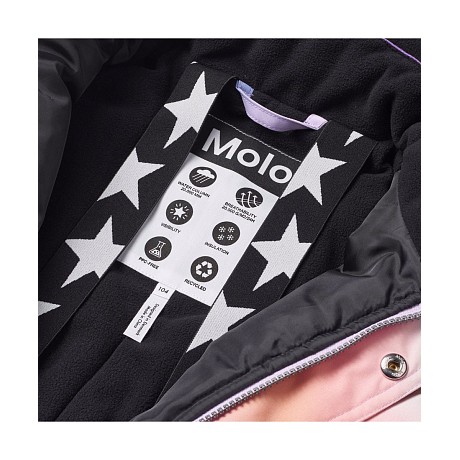 Комбинезон для девочки Molo – это идеальный выбор для стильных и активных малышек! Фиолетовый цвет с яркими звездами и контрастной окантовкой создает неповторимый образ. Материал 55% полиэстер + наполн. 78% полиэстер переработанный, 22% полиэстер + подкл. 100% полиэстер переработанный обеспечивает отличную защиту и комфорт. Качество от датского бренда Molo делает этот комбинезон отличным выбором для вашего ребенка!