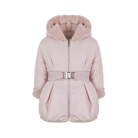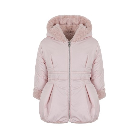 Куртка для девочек бледно-розового цвета с капюшоном и мехом