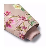 - 🎨 Дизайн: цветочный принт с розовыми и белыми цветами, эластичная резинка на капюшоне