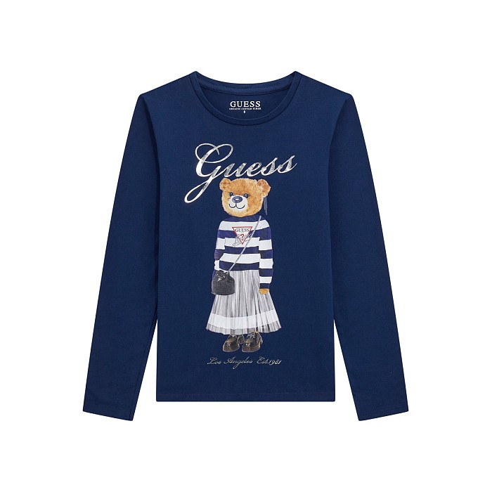 Темно-синяя фуфайка для девочек Guess с принтом медведя и сумочкой