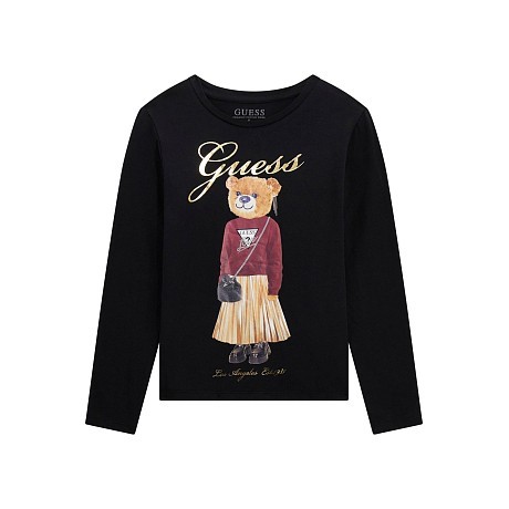 Черная фуфайка для девочек Guess с принтом медведя и сумочкой