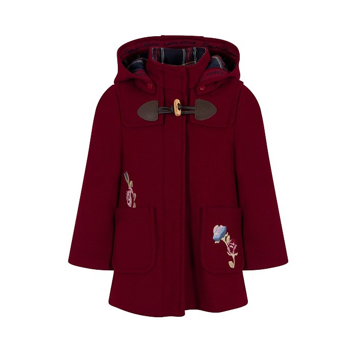 Пальто для девочек Lapin House бордового цвета с цветочным принтом