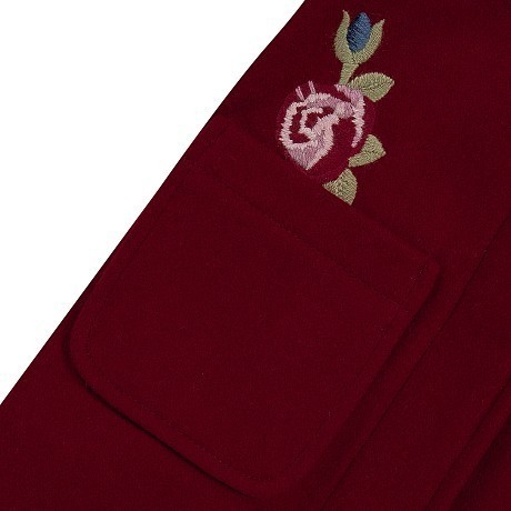 - 🎨 Дизайн: бордовый цвет, цветочные вышивки, удобная застежка на капюшоне