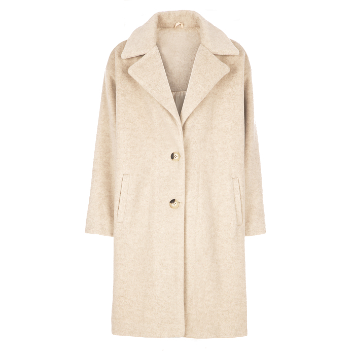 Текстильное пальто для девочек бежевого цвета с черным и серым