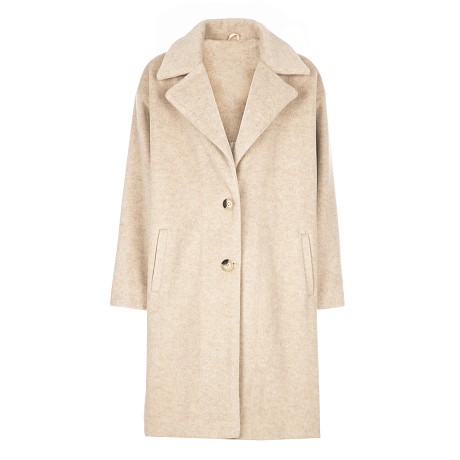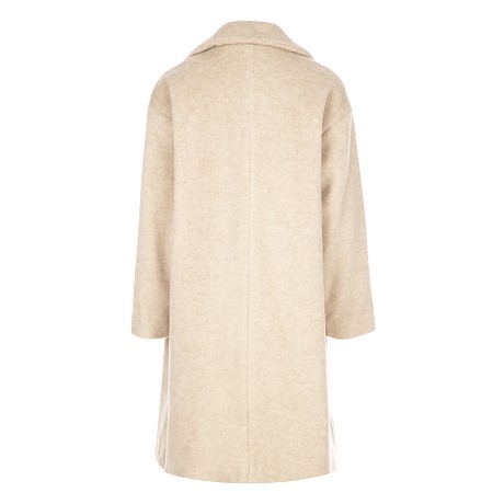 Текстильное пальто для девочек бежевого цвета с черным и серым