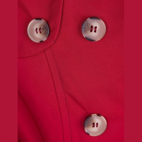 - 🎨 Дизайн: красный цвет, пояс с двумя пуговицами