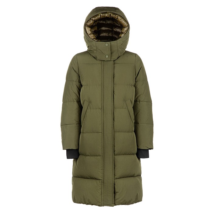 Пальто для девочек Freedomday хаки с капюшоном и пуховым наполнителем