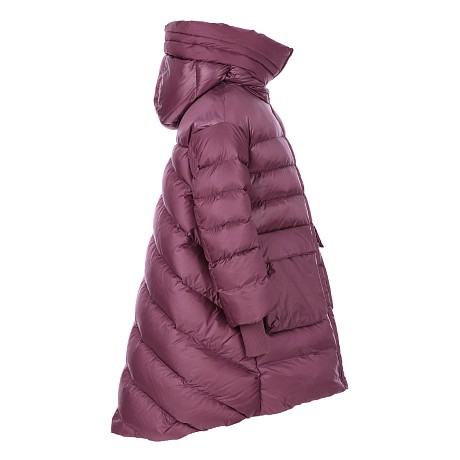 Пальто для девочек бордового цвета с капюшоном и карманами