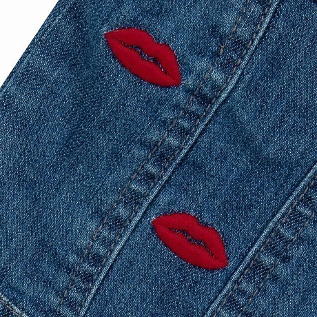 - 🎨 Дизайн: красные аппликации в виде губ, удобная застежка на пуговицы