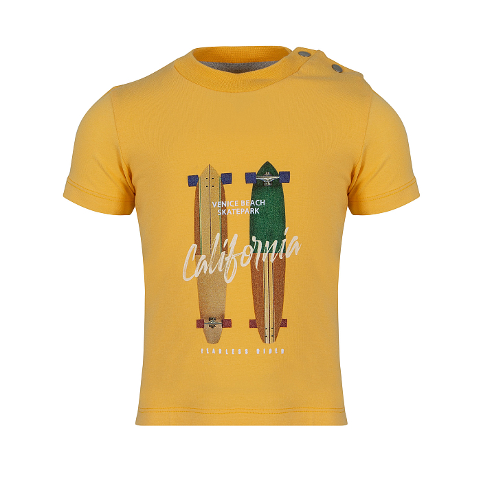Джемпер Lapin House – это идеальный выбор для вашего юного скейтбордиста! Изготовленный из 94% хлопка и 6% лайкры, он украшен принтом California с изображением двух скейтбордов. Желтый цвет создает яркий и веселый настрой, а принт добавляет уникальности и стиля. На фотографии видны аккуратные детали швов и удобная посадка. Качество от бренда из Греции и внимание к деталям делают этот джемпер отличным выбором для вашего ребенка!