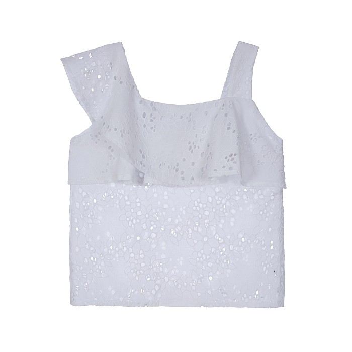 Белая блуза Lapin House – это идеальный выбор для девочек! Изготовленная из 100% хлопка, она украшена нежным цветочным принтом и открытыми плечами, которые создают стильный и элегантный образ. Белый цвет блузы подчеркивает её универсальность и подходит к любому наряду. На фотографии видна аккуратная отделка плечевыми ремнями и мягкая текстура ткани. Качество от бренда из Греции и внимание к деталям делают эту блузу отличным выбором для вашего ребенка!