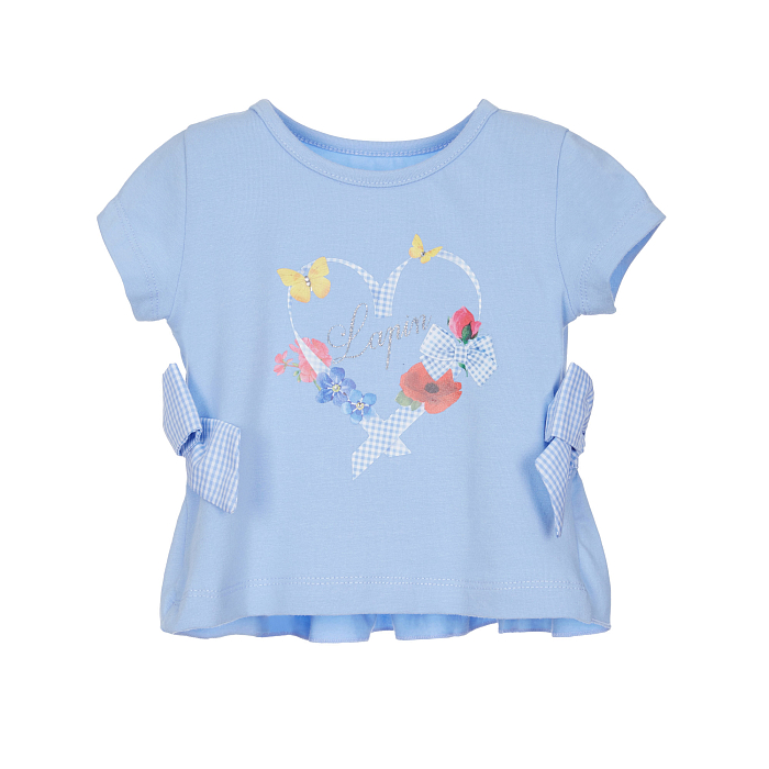 Блуза-топ Lapin House – это идеальный выбор для девочек! Изготовленная из 95% хлопка и 5% эластана, она украшена очаровательным принтом сердца с бабочками и цветами. Нежная голубая основа с яркими акцентами создает игривое и в то же время уютное настроение. На фотографии видна аккуратная голубая окантовка по краю и мягкая текстура ткани. Качество от бренда из Греции и внимание к деталям делают эту блузу-топ отличным выбором для вашего ребенка!