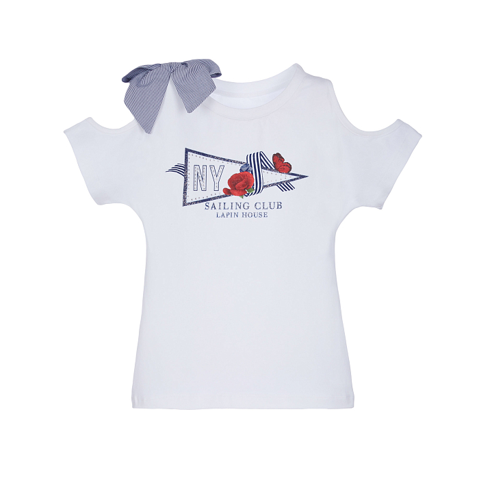 Белая блуза тр. для девочки Lapin House – это идеальный выбор для вашего ребенка! Изготовленная из 95% хлопка и 5% эластана, она украшена оригинальным принтом с надписью NY и красной розой. Белый фон с яркими красными и синими элементами создает яркий и стильный образ. На фотографии видна аккуратная белая блуза с оригинальным принтом и красивой биркой на воротнике. Качество от бренда из Греции и внимание к деталям делают эту блузу отличным выбором для вашего ребенка!