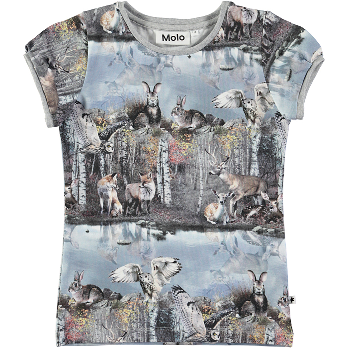 Футболка Molo – это идеальный выбор для девочек! Изготовленная из 95% хлопка и 5% эластана, она украшена очаровательным принтом с лесными животными: зайцами, лисами, оленями и совами. Мягкая и удобная, эта футболка создает уют и радость. На фотографиях видны все животные, а также мягкая текстура ткани и удобная круглая горловина. Качество от бренда из Украины делает эту футболку отличным выбором для вашего ребенка!